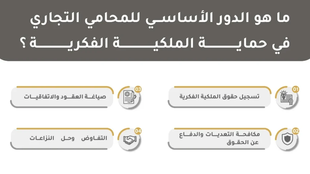 ما هو الدور الأساسي للمحامي التجاري في حماية الملكية الفكرية؟